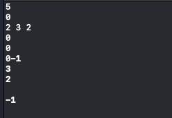 a가 0일 때마다, 아이들에게 준 선물의 가치를 출력하시오. 만약 줄 선물이 없다면 -1을 출력하라. 적어도 하나의 출력이 있음을 보장한다.