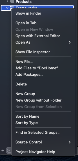 프레임워크파일에서 Add Fileds to 를 해서 SDK파일을 추가한다