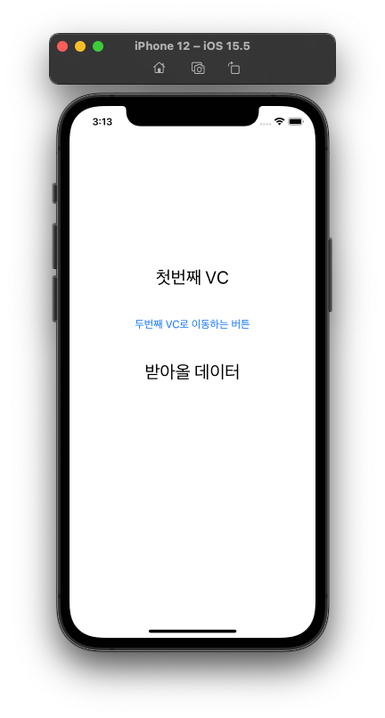 | 처음 화면 | 이동 버튼을 클릭했을 때 두번째 VC로 이동 | 닫기를 눌렀을 때 델리게이트 호출 |