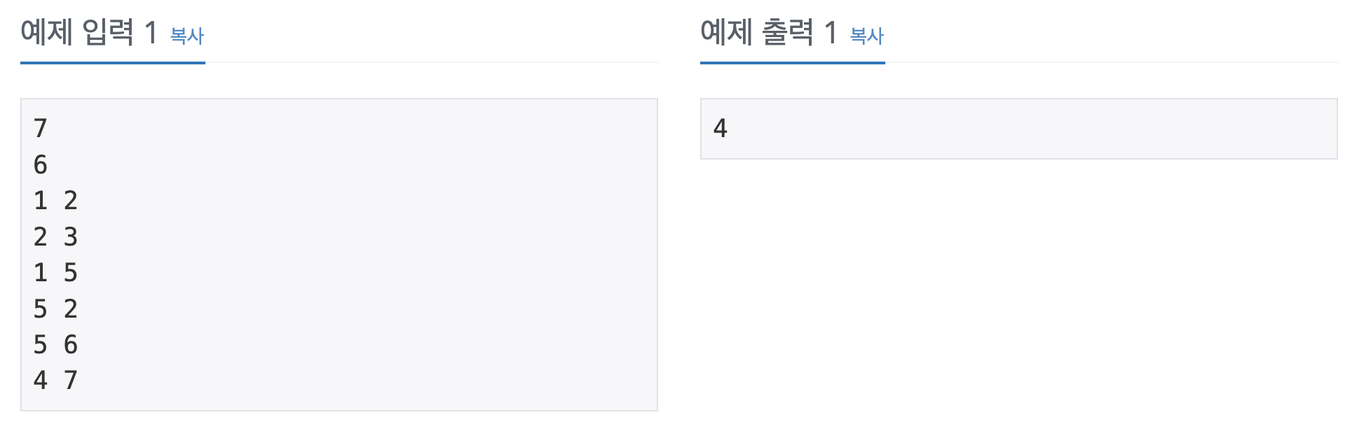 둘째 줄 = 네트워크 상에서 직접 연결되어 있는 컴퓨터 쌍의 수