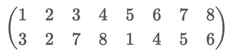 1부터 N까지 정수 N개로 이루어진 순열을 나타내는 방법은 여러 가지가 있다. 예를 들어, 8개의 수로 이루어진 순열 (3, 2, 7, 8, 1, 4, 5, 6)을 배열을 이용해 표현하면