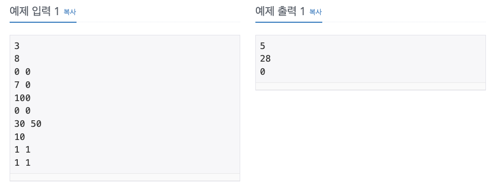 입력의 첫째 줄에는 테스트 케이스의 개수가 주어진다.