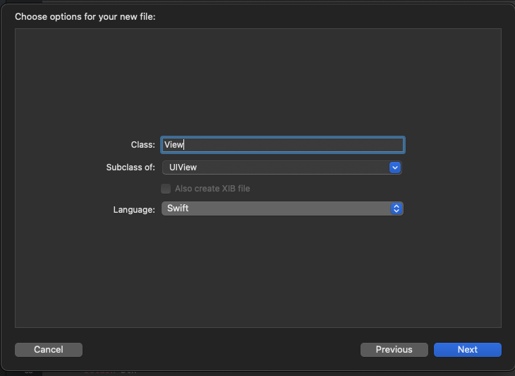 - [New file...] -> [Cocoa Touch Class] -> UIView 파일 생성
