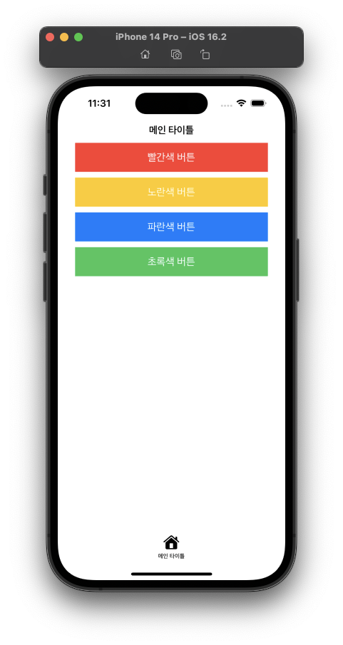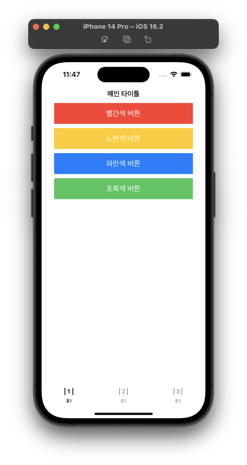 네비게이션의 타이틀만 이름을 "메인 타이틀"로 설정하고 탭바는 "홈"이라는 타이틀을 설정하게 된다.