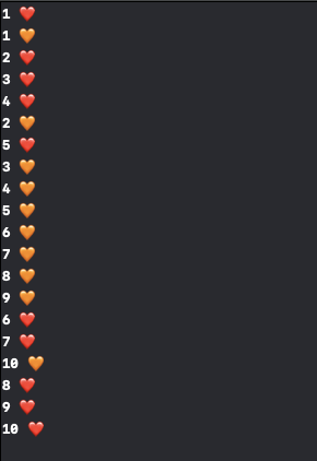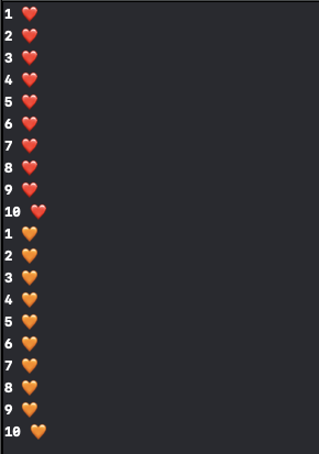 print("\(i) 🧡")