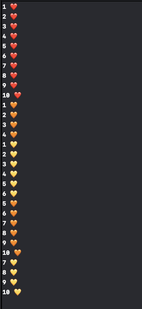 print("\(i) 💛 ")