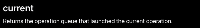 - 실행 중인 작업 개체 내에서 이 메소드를 사용하여 이를 시작한 오퍼레이션 큐에 대한 참조를 가져올 수 있다.