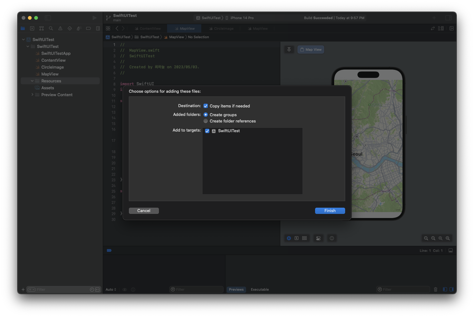 SwiftUI파일 (파일명 : LandmarkRow)을 생성한다.