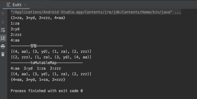 val mm = mutableMapOf(1 to "za", 3 to "yd", 2 to "zzz", 4 to "aa")