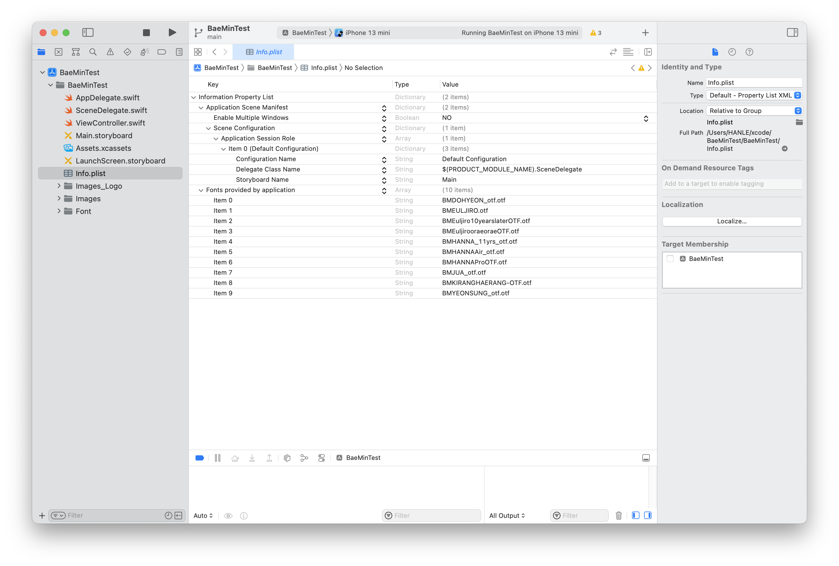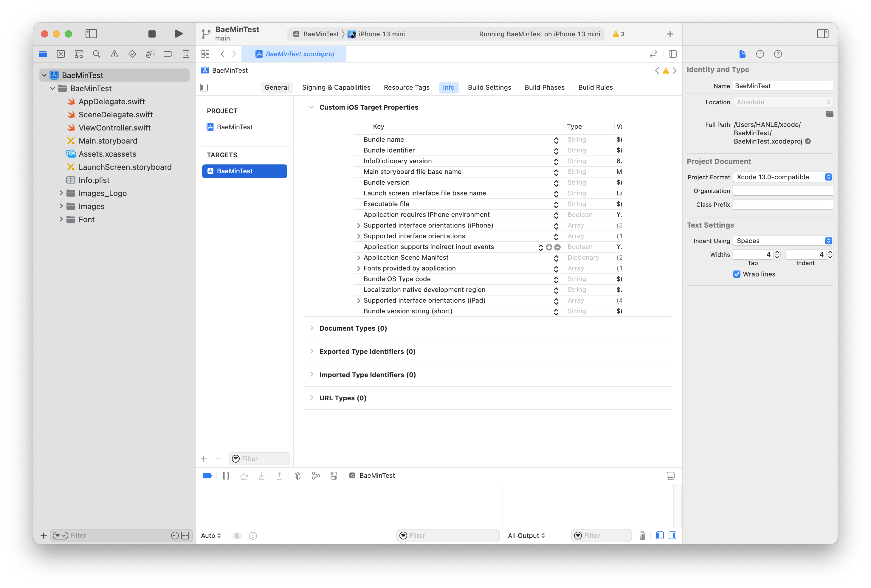 - Exported Type Identifiers / Imported Type Identifiers : 앱에서 내보내거나 가져올 수 있는 모든 파일 유형에 대해 내보내고 가져온 UTI를 추가, 일반적으로 앱에 고유한 문서 유형과 달리 UTI는 일반 텍스트 또는 .png (예를 들어 UTI는 앱간에 클립 보드에 복사 및 붙여넣기를 지원)